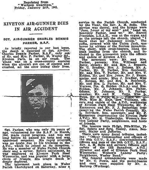Driver Colin Perry was the only son of John and Mary Perry of Kiveton Park. Prior to the war, he was a talented footballer, being poached from Kiveton Park FC to Sheffield United, then transferred to ‘Wolves’ in 1934. He also played for Wrexham and Gainsborough Trinity before going to Aston Villa in 1936 and to Nottingham Forrest in 1939. He had married Eva Bridger at Marden, Kent on 31st July 1941.